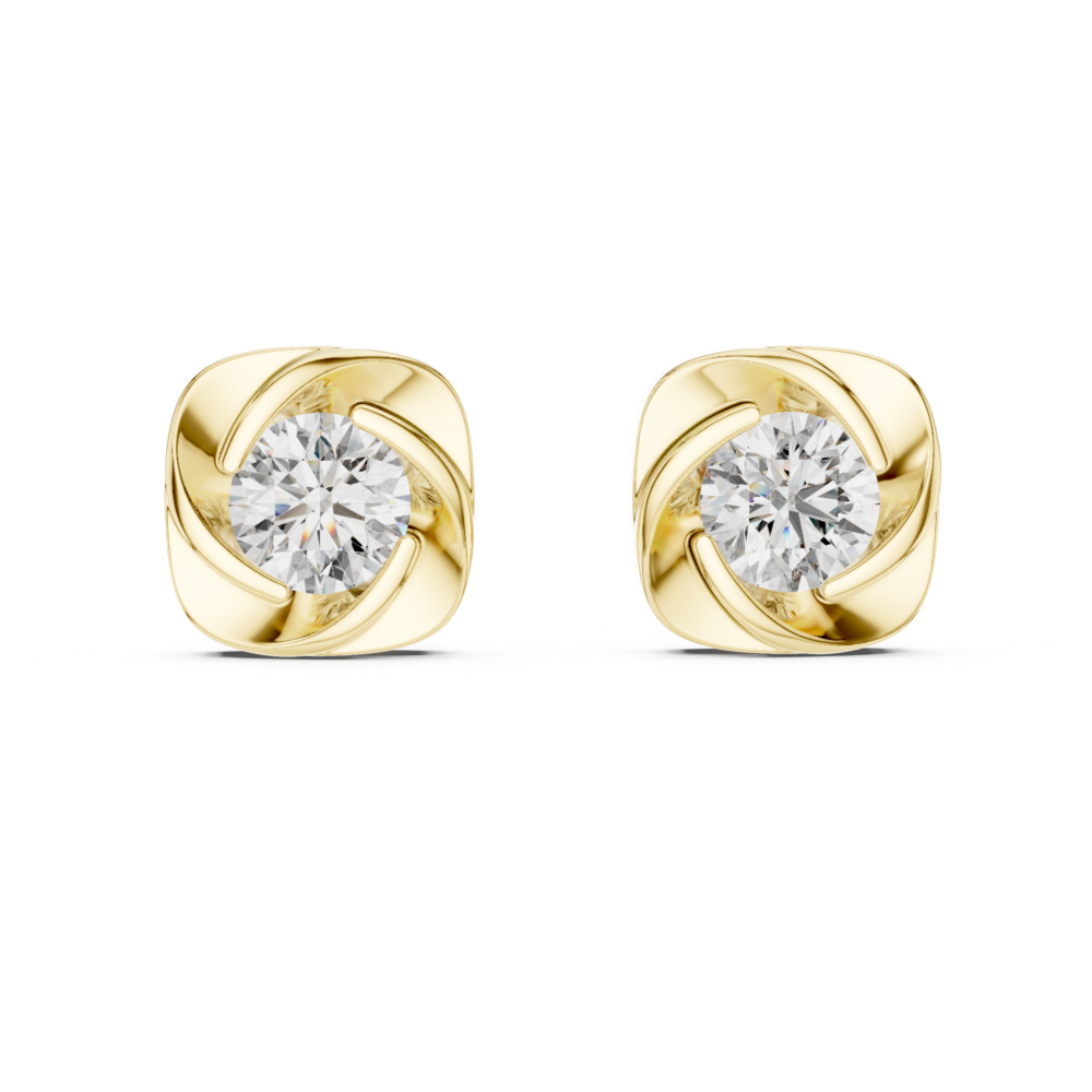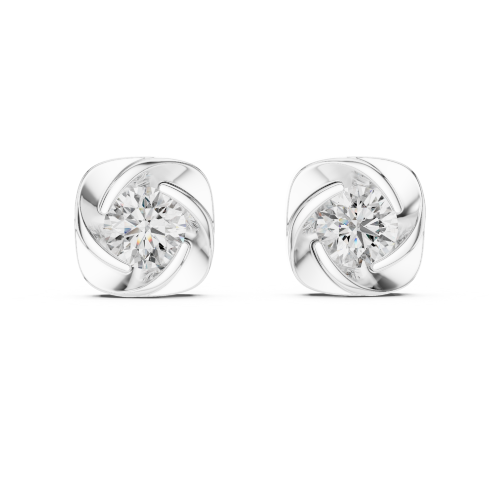 Artistic Square Swirl Round Solitaire Studs