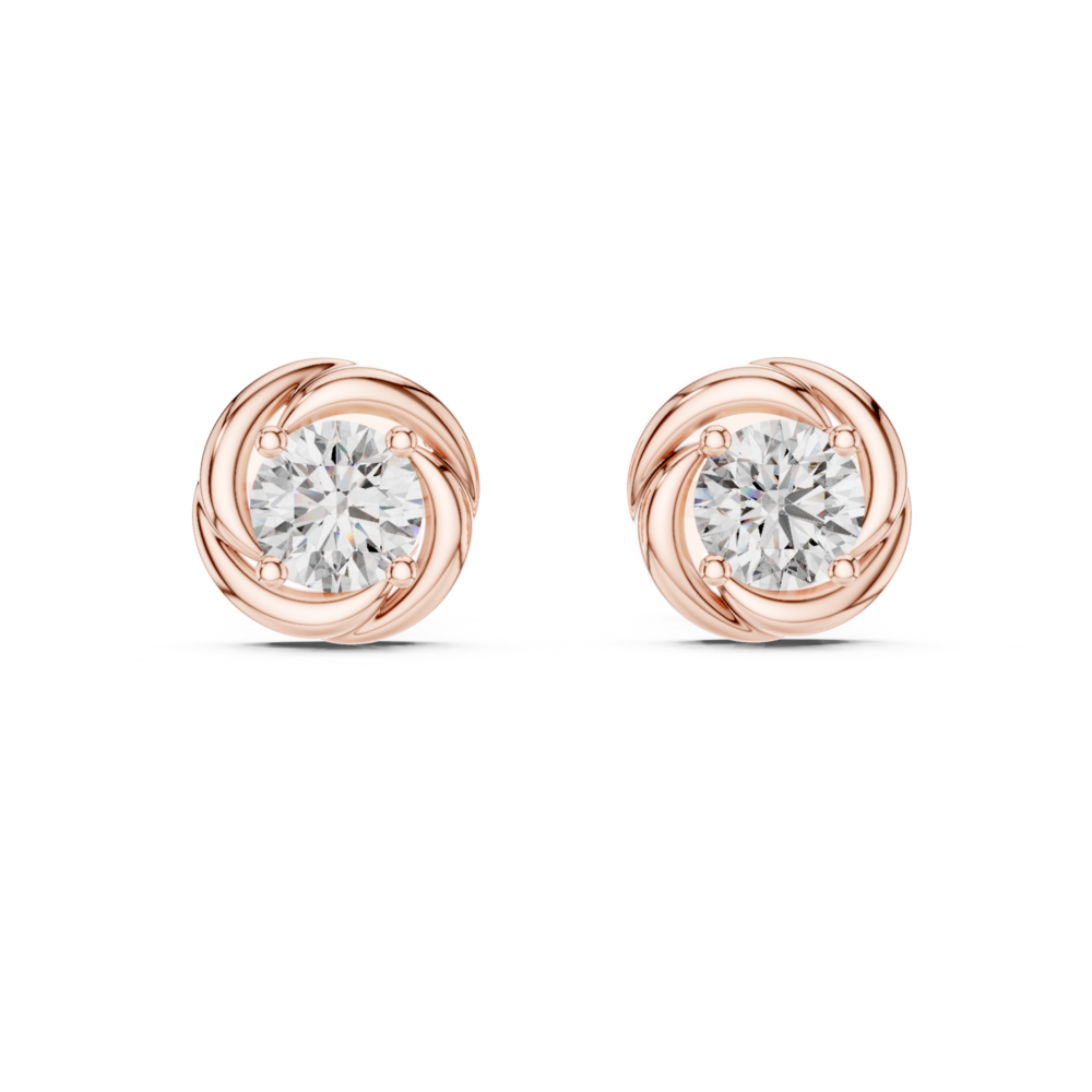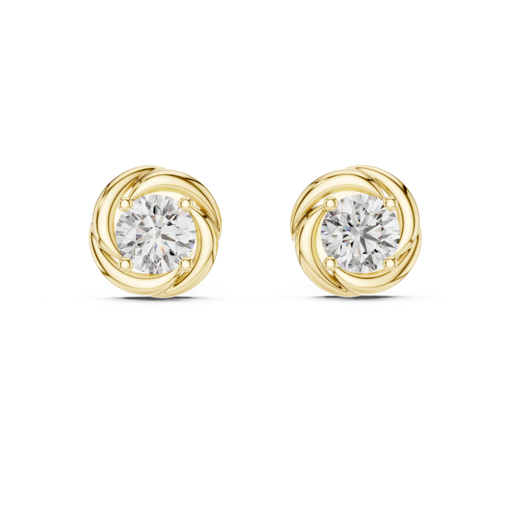 Soft, flowing lines meet brilliant sparkle in these unique swirl-inspired solitaire earrings. The 3.8mm center stone is encased in a polished curved frame that mimics the motion of a gentle wave or a budding flower. This artistic setting adds a touch of modern femininity to the classic solitaire, making it feel more personal and distinct. Perfect for adding a soft, decorative element to a casual or professional ensemble
