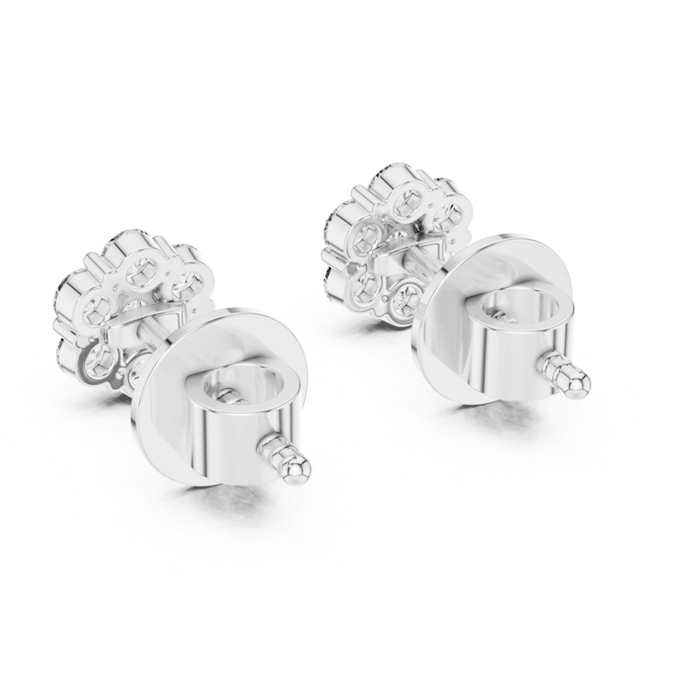 Capture the essence of a spring garden with these radiant flower cluster earrings. Featuring 14 brilliant round stones arranged in a seamless floral pattern, this design maximizes light reflection from every angle. Each petal is meticulously set to create a cohesive, high-sparkle surface that mimics a large single blossom. Elegant and playful, these studs are a perfect way to add a touch of floral charm to any look