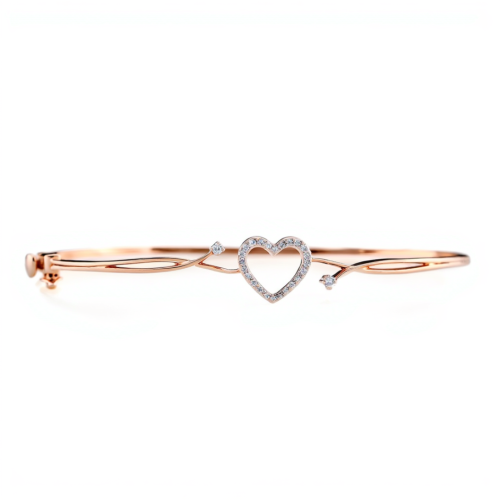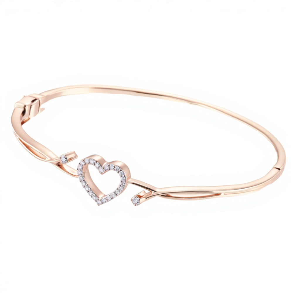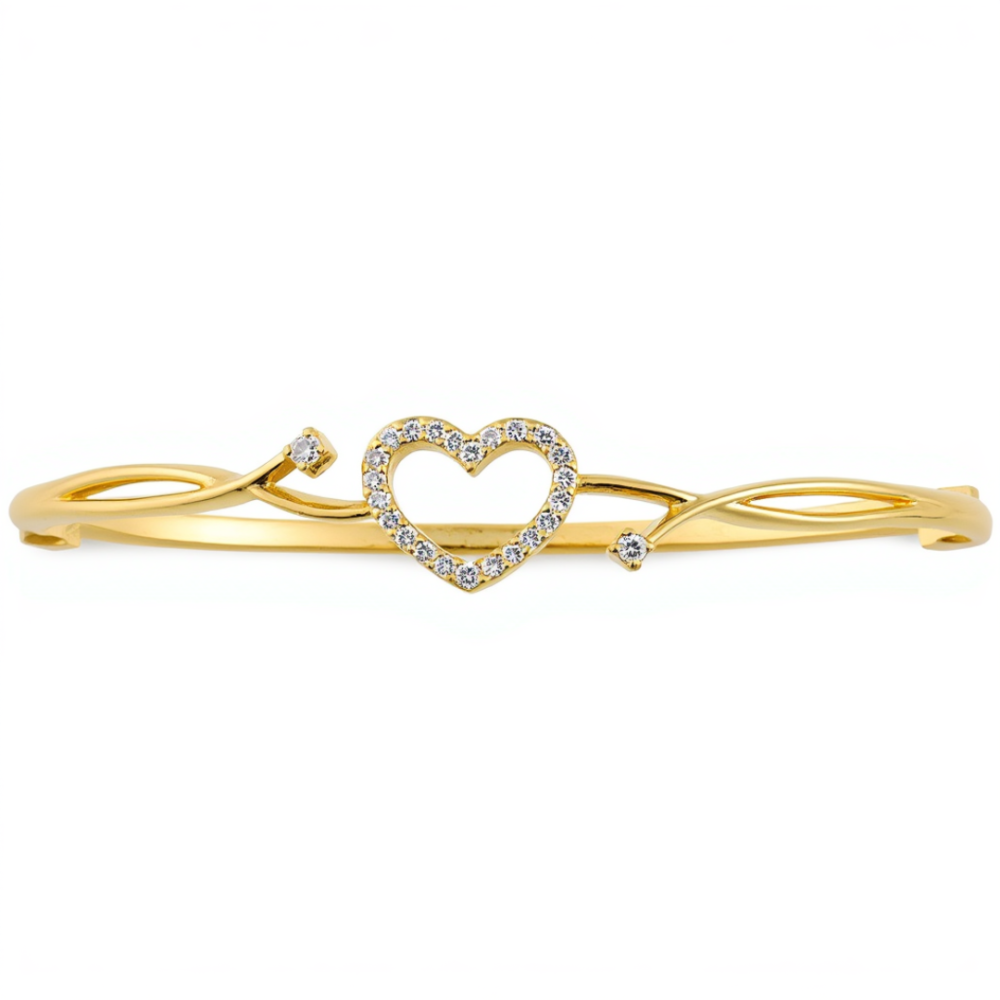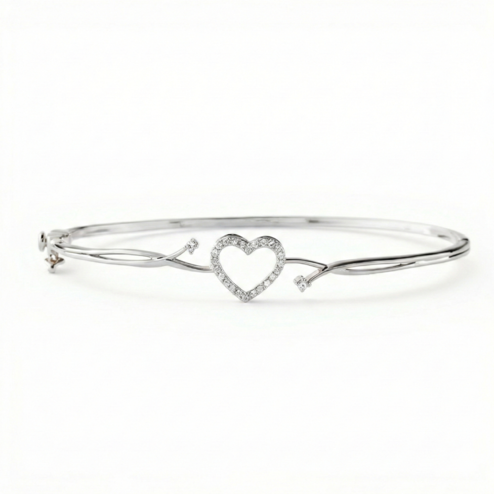 This sleek, minimal bangle features a shimmering heart motif outlined with sparkling lab grown stones. The slim, open design makes it comfortable for daily wear while still feeling special and romantic. Its graceful silhouette pairs effortlessly with both Western and ethnic outfits. A thoughtful Valentine’s Day or anniversary gift that says “you’re always in my heart.”